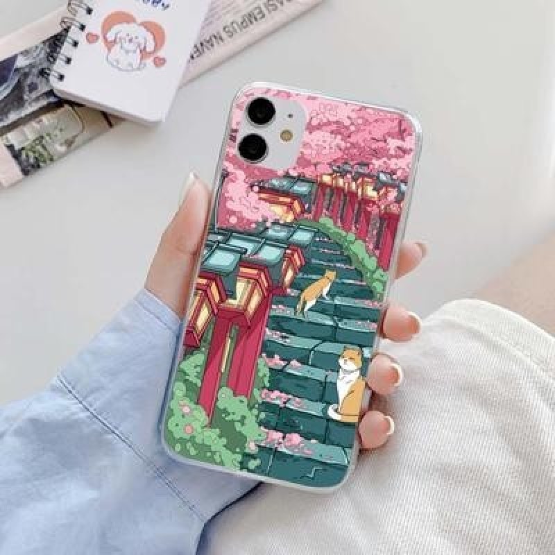 Японский эстетический прозрачный чехол Traint Moun Fuji для iPhone 14 13 12 11 Pro Max 8 7 Redmi 12C