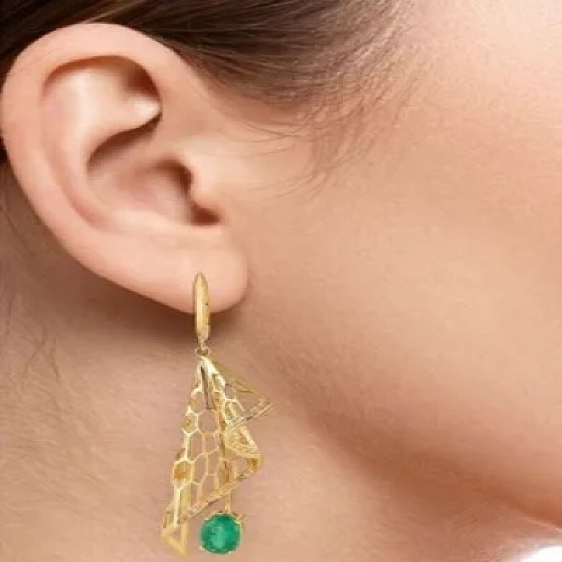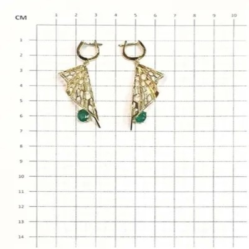 G.st. ЮВЕЛИРНЫЙ ЗАВОД ЗОЛОТОЙ СТАНДАРТ Серьги Балет из желтого золота с натуральными изумрудами и бр
