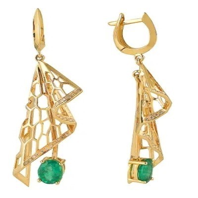 G.st. ЮВЕЛИРНЫЙ ЗАВОД ЗОЛОТОЙ СТАНДАРТ Серьги Балет из желтого золота с натуральными изумрудами и бр