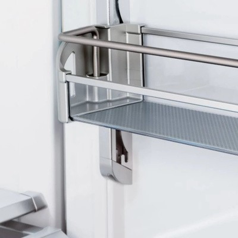 Встроенные холодильники – это отличное решение для тех, кто хочет максимально эффективно использовать пространство своей кухни. Встраиваемый холодильник легко интегрируется в кухонный гарнитур и позволяет существенно сэкономить место. В нем может быть морозильная камера с системой no frost, то есть не требующая размораживания. Холодильники могут быть двухкамерными, то есть с морозильной камерой отдельно, или однокамерными, где все продукты хранятся в одном отделении. Однако двухкамерный холодильник предпочтительнее, так как он позволяет лучше организовать хранение различных продуктов. Выбор встроенного холодильника зависит от размера кухни и количества продуктов, которые вы хотите хранить. Но в целом, встроенные холодильники - это отличное решение для тех, кто хочет максимально использовать пространство своей кухни и обеспечить оптимальное хранение продуктов. Встраиваемые холодильники Bertazzoni разработаны, спроектированы и изготовлены в Италии с использованием материалов и компонентов самого высокого качества. Запатентованная система дверного навеса "lift & swing" делает их идеальным выбором как для отдельно стоящего холодильника, так и встраиваемого. Благодаря одному из 3 доступных комплектов ручек в стиле серий Professional, Master и Heritage, эти холодильники легко интегрируются со всей другой бытовой техникой Bertazzoni в гармонирующие по стилю комплекты для настоящей, высокопроизводительной кухни. Встраиваемые холодильники созданы для долгосрочной службы, благодаря использованию металла и стекла внутри и снаружи для улучшенного контроля температуры. Система бокового обдува с двойным компрессором и испарителем для холодильника и морозильной камеры снижает потери холодного воздуха при открывании дверей и обеспечивает лучшую в своем классе внутреннюю глубину. Внутренняя конфигурация разработана с максимальной гибкостью: объем холодильника 425 л и объем FlexMode 131 л. Холодильник-морозильник FlexMode позволяет одним касанием переключать нижнее отделение с морозильной камерой на холодильник. Внутреннее светодиодное освещение сверху и по бокам обеспечивает яркий свет внутри на всех уровнях с минимальным потреблением энергии. Встроенный фильтр для воды, подключенный к водопроводу, обеспечивает регулярное производство кубиков льда настраиваемого размера.