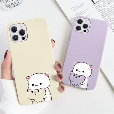 Симпатичный cat Мягкий чехол для iPhone 12 11 Pro Max XR 7 X Samsung A52 A32 A50 A51 S21 A12 A72 Hua