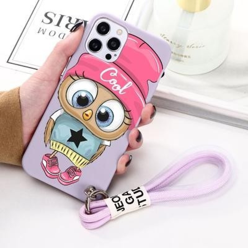 Симпатичный Сова Мультяшный ремешок Ремешок для телефона Чехол для iPhone 13 12 11 Pro Max Xiaomi Mi